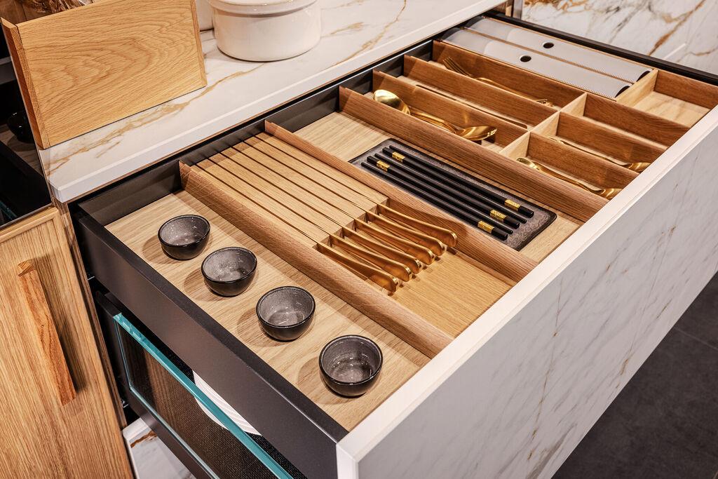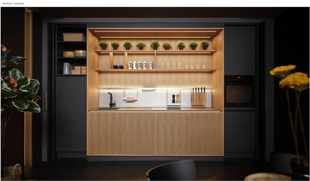 Eine moderne Küche mit raffinierter Eleganz und einer tiefen Verbindung zur Natur. Warme Holztöne umrahmen die zeitlos schöne Keramikoberfläche in perfekter Symbiose. Die Lamellen-Holzelemente erzeugen ein Gefühl von Ruhe. Eine richtig gute Wahl, denn exzellente Qualität ist keine Ware von der Stange, sondern ein emotionales Ergebnis von Wunsch und Anspruch!